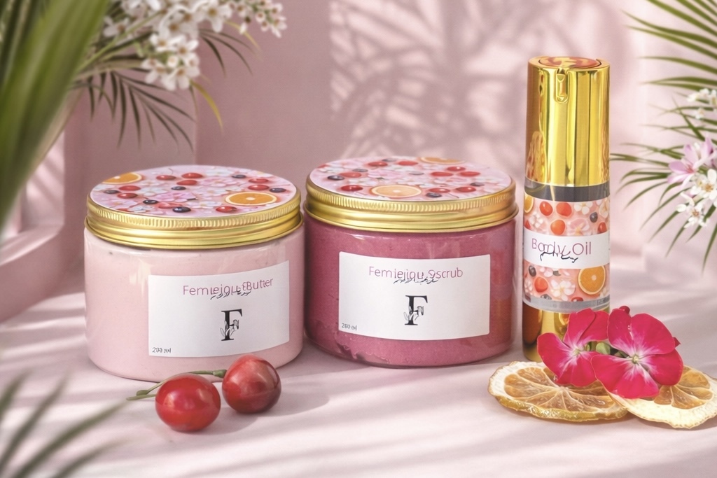 بكج الانوثة الثلاثي بكج الانوثة الثلاثي يتكون من : سكراب الجسم + زبدة الجسم + زيت الجسم العطري 10 د.أ15 د.أ